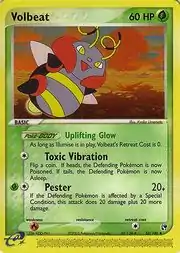 Volbeat (Japanese: バルビート Barubeat) is a Grass-type Basic Pokémon card. It is part of the EX Sandstorm expansion.