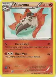 Fiery Dance and Heat Wave are both moves in the Pokémon games that Volcarona can learn. This card's Pokédex entry comes from Pokémon Black.