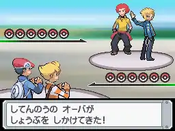 After Charon is defeated, Giratina tries one last time to attack Platinum, only for Flint and Volkner to attack it from behind and defeat it. Satisfied, the two hi-five each other in a prideful boast of their strength.