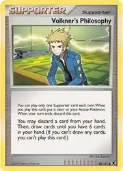 Volkner's Philosophy (Japanese: デンジの哲学 Denzi's Philosophy) is a Supporter card. It is part of the Rising Rivals expansion.