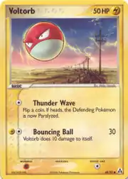 Voltorb (Japanese: ビリリダマ Biriridama) is a Lightning-type Basic Pokémon card. It is part of the EX Legend Maker expansion.