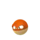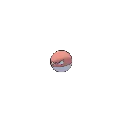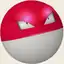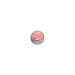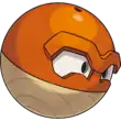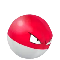 Voltorb is a spherical Pokémon that resembles a Poké Ball with eyes and minus the button. The top half is red, while the bottom half is white. Because of its resemblance to Poké Balls, it is thought that it was created when one was exposed to an energy pulse.