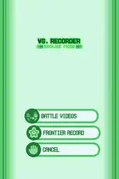 The recorded battles, known as Battle Videos, can be found here. The Vs. Recorder can record battles from the Battle Frontier, wireless play and Wi-Fi. Players can also download videos from the Global Terminal which can be viewed in the second option. An uploaded video to the Global Terminal will receive a twelve-digit code, much like a Friend Code. The third option deletes recorded videos.