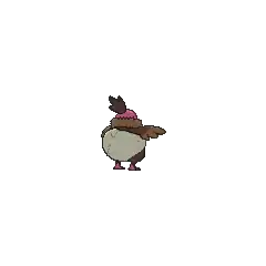 Vullaby protect their rear by wearing a cracked skull as a diaper-like undergarment, hence its categorization. Vullaby either finds this bone itself or uses one found for it by Mandibuzz. Its large appetite results in large growth sports, resulting in Vullaby having to replace their bones, and they often pass older bones down to smaller Vullaby. Vullaby often start petty chats with their own kind on which bones are the most comfortable. Vullaby is known to chase after weaker creatures. Vullaby is a female-only species.