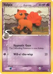 Vulpix δ (Japanese: ロコン δ Rokon δ) is a Psychic-type Basic Pokémon card. It is part of the EX Dragon Frontiers expansion.