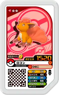 Vulpix (Japanese: ロコン Rokon) is a Grade 1 Pokémon Ga-Olé disk. It is part of the first Grand Rush set.