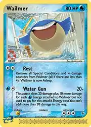 Wailmer (Japanese: ホエルコ Hoeruko) is a Water-type Basic Pokémon card. It is part of the EX Ruby & Sapphire expansion.