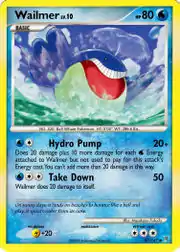 Hydro Pump and Take Down are both moves in the Pokémon games. Wailmer can learn Hydro Pump, but not Take Down. This card's Pokédex entry comes from Pokémon Diamond, Pearl, and Platinum.