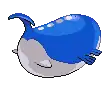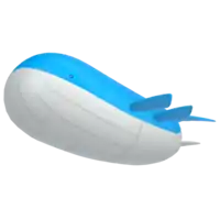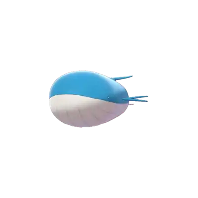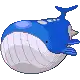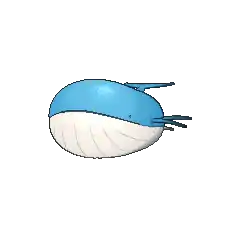 Wailord is a huge Pokémon based on the blue whale. It has small beady eyes, a huge mouth, and a throat that is lined with grooves. It has a blue back with and four white spots, two breathing nostrils on top of its back, and a tan, grooved underbelly. It has two pairs of fins along its sides and a horizontal tail at the back.