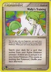 Wally's Training (Japanese: ミツルの育成 Mitsuru's Development) is a Supporter card. It is part of the EX Sandstorm expansion.