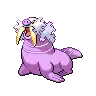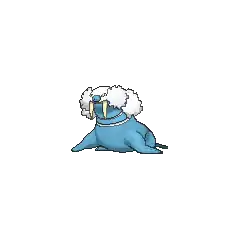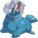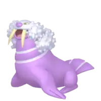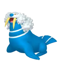 Walrein lives in and around icy seas, where it is insulated against the cold by its thick layer of blubber. This layer of fat also protects it from enemy attacks by causing them to bounce off. It can coat its body in ice and charge opponents to use its former signature move, Ice Ball. While its long tusks are capable of crushing ice up to 10 tons in one blow, they may break during battle. This Pokémon can be found in herds, which are fiercely protected by the leader. The leader is willing to give up its life in order to protect the herd. A herd of Walrein usually consists of 20 to 30 individuals. Whenever Walrein's impressive tusks break during battle, they always grow back every year.