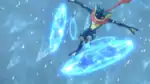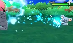 | When covered in a veil of water, Ash-Greninja forms a shuriken of water in one or both its hands. It then tosses the shuriken or shurikens at the opponent. When it's in its final form, it instead grabs the shuriken on its back and throws it at the opponent. After it does so, another shuriken pops up on Ash-Greninja's back. At times, this shuriken can grow to a larger size to deal more damage to the opponent. | |||