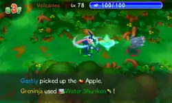 | Greninja forms a shuriken of water in its hand. It then tosses the shuriken at the opponent. | |||