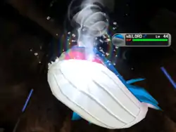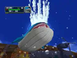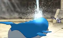 Wailord shoots a large blast of water from its blowhole. | ||