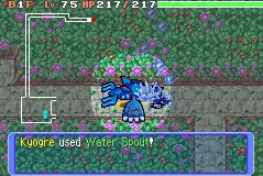 In Red Rescue Team and Blue Rescue Team, Water Spout is a move with 30 base power, 84% accuracy, and 8 PP. The user attacks enemy in the front, with the final damage being multiplied by ½ when at 75-51% HP, 51/256 (~0.2x) when at 50-26% and 25/256 (~0.1x) when at 25% or lower.