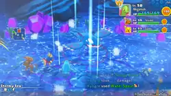 In a battle with multiple opponents, Water Spout will target all adjacent opponents. Water Spout will also destroy stalagmites found in the background of battles.