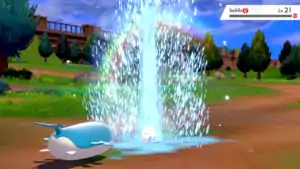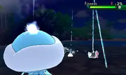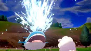 Wailord fires a blast of water from its blowhole at the opponent. | ||