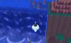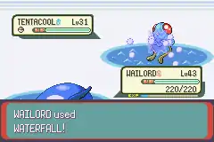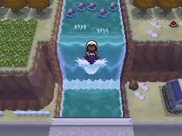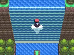 • In Generation VI, if the player uses Waterfall to go up or down a waterfall while riding on a Pokémon with a unique Surfing model (like Lapras), the screen will briefly be covered in a splash of water and then show the player at the other end of the waterfall, instead of showing the entire process.
