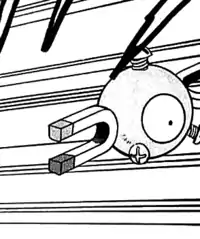 | Magnemite was the first Pokémon used by Wattson in his Gym battle against Ash. Due to Pikachu being powered-up by the exploding mecha-Raikou, it was defeated with only a single Thunderbolt.