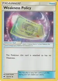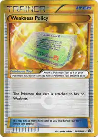 Weakness Policy (Japanese: じゃくてんほけん Weakness Insurance) is a Pokémon Tool card. It was first released as part of the Primal Clash expansion.