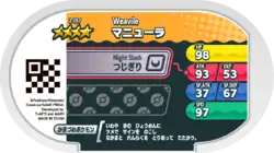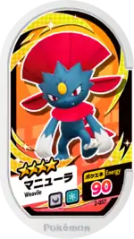 Weavile (Japanese: マニューラ Manyula) is a Grade 4 Pokémon Mezastar tag. It is part of the second set.