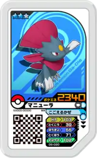 Weavile (Japanese: マニューラ Manyula) is a Grade 2 Pokémon Ga-Olé disk. It is part of the fifth Dash set.