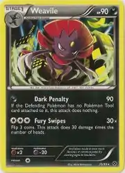 Weavile (Japanese: マニューラ Manyula) is a Darkness-type Stage 1 Pokémon card. It is part of the Next Destinies expansion.