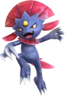 Weavile is Speed-type playable character in Pokkén. Moves it can use include Agility, Fury Swipes, Fake Out, Knock Off, and Night Slash. In Burst form, it can use the Burst Attack Sonic Slash.