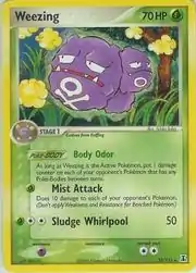 Weezing (Japanese: マタドガス Matadogas) is a Grass-type Stage 1 Pokémon card. It is part of the EX Delta Species expansion.