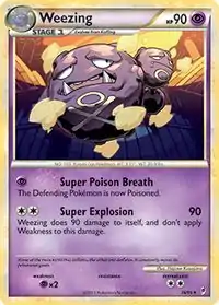 Weezing (Japanese: マタドガス Matadogas) is a Psychic-type Stage 1 Pokémon card. It was first released as part of the HeartGold & SoulSilver expansion.