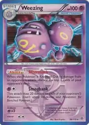 Weezing (Japanese: マタドガス Matadogas) is a Psychic-type Stage 1 Pokémon card. It is part of the Plasma Storm expansion.