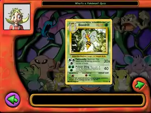 - "Hey there! Let's look at another card. This one is called 'Beedrill'."