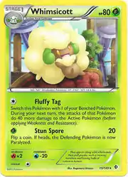Whimsicott (Japanese: エルフーン Elfuun) is a Grass-type Stage 1 Pokémon card. It is part of the Boundaries Crossed expansion.
