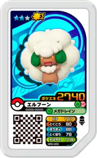 Whimsicott (Japanese: エルフーン Elfuun) is a Grade 2 Pokémon Ga-Olé disk. It is part of the fifth Grand Rush set.