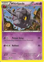 Whirlipede (Japanese: ホイーガ Wheega) is a Psychic-type Stage 1 Pokémon card. It was first released as part of the Black & White expansion.