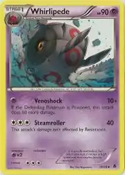 Venoshock and Steamroller are both moves in the Pokémon games that Whirlipede can learn. This card's Pokédex entry comes from Pokémon White.