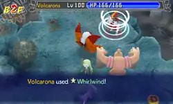 Whirlwind (Japanese: ふきとばし Blow Away) is a non-damaging Normal-type move introduced in Generation I. It was TM04 in Generation I.