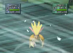 Pidgeotto Pidgeotto flaps its wings and a strong gust is created from them.