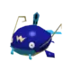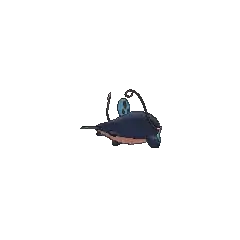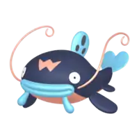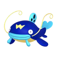Whiscash is a dark blue, catfish-like Pokémon with a yellow underbelly. It has a cavernous mouth with light blue lips that have short, thin whiskers growing from the lower lips. Long, yellow barbels grow from its cheeks, and there is a yellow marking on its forehead that resembles a W. The light blue dorsal fin has a pattern of three spots arranged in a triangle, while its horizontal tail fin lacks spots. Its pectoral fins and belly fins match its main body color. It causes earthquakes that can extend for over three miles, and can predict when natural earthquakes will occur. It lives at the bottom of ponds and swamps, and is territorial over them. It eats anything that is alive and has been shown in the anime to eat inanimate objects as well.