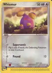 Supersonic and Pound are both moves in the Pokémon games that Whismur can learn. This card's e-Reader Pokédex entry comes from Pokémon Ruby.