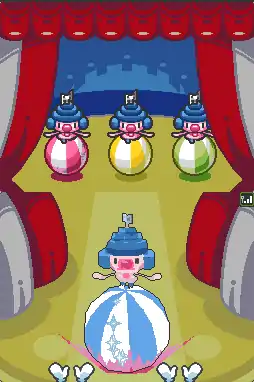 Using the DS's touchscreen, the player must balance on top of a giant circus ball by spinning the balls at different angles so Mime Jr. doesn't fall off. The touch screen will display the player's Mime Jr. and circus ball, while the top screen will display other players' Mime Jr. and circus balls. The circus balls will be colored differently to distinguish between players.