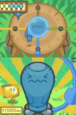 The touch screen will display the player's pump, shaped like a big Wobbuffet, that can be touched to pump the balloons that appear on the top screen. The top screen will also display the other players pumps, and the field, where other Wynaut obstacles bounce. The pumps will be colored different colors to distinguish between players.