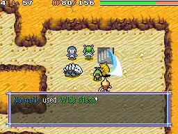 Wide Slash will attack foes on the three tiles in front of the player; diagonally and directly across. Its power can be raised through Ginseng. It has the standard critical hit rate of 12%. As it is a typeless move, it bypasses Wonder Guard.