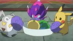 In The Young Flame Strikes Back!, Pikachu, Poipole, and Togedemaru were eating a couple of Wiki Berries.
