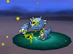 Electivire's body becomes surrounded in yellow electricity and it charges at the opponent, tackling them. Sometimes, red sparks run up Electivire's body as it takes recoil damage. | ||