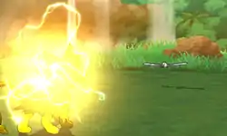Luxray runs at the opponent. Its body then becomes surrounded by yellow electricity, and it tackles the opponent. | ||