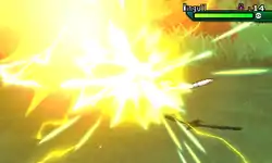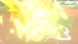 | Zebstrika pulls its legs up and charges at the opponent while surrounded in bright gold electricity with white static around it. When it hits the opponent, the electricity around it gathers where Zebstrika collided with the opponent, forming into a white orb of sparkling energy, which then explodes. | |||