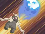 The yellow markings on Dusknoir's body glow yellow and it holds out both of its hands. Two blue fireballs then appear in front of them and Dusknoir fires them at the opponent. | ||