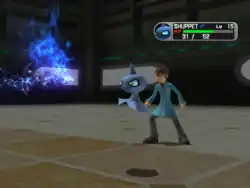Duskull puts its hands together and a light blue fireball appears in between them. Duskull then fires the fireball at the opponent. | ||