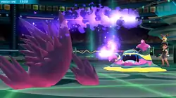 | Delphox forms a pink, light blue, and dark blue fireball at the tip of its wand stick. It then swings the wand, firing the fireball at the opponent. | |||